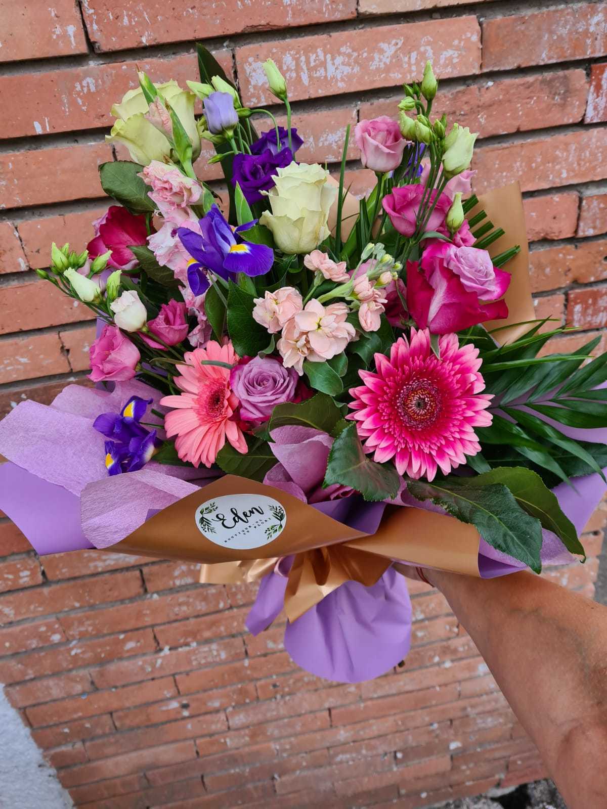 Buchet mixt- trandafir, gerbera, eustoma, iris, mattiola